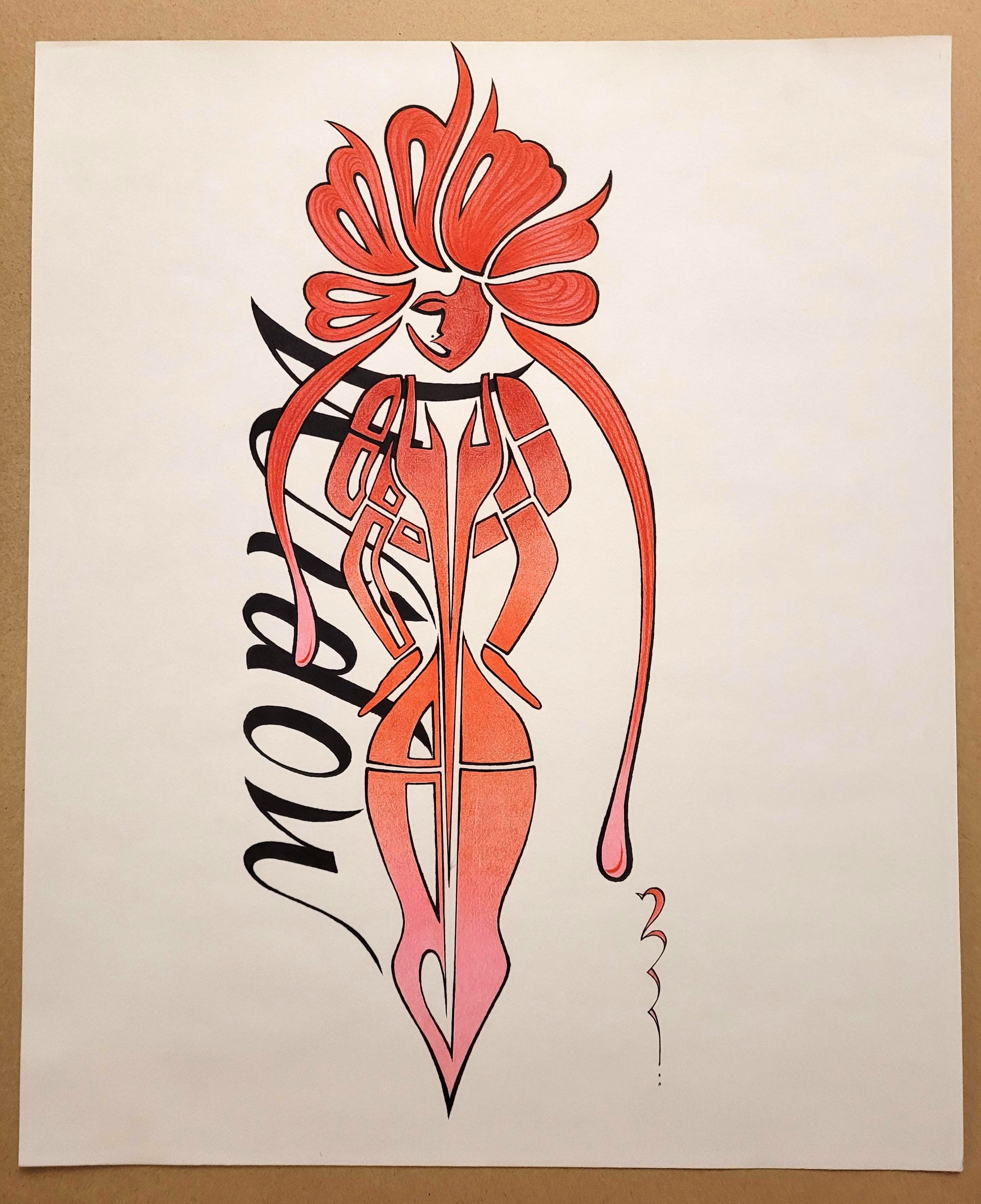 This "Red Widow" is inspired by the beautiful red mark on a black widow spider. This is the original artwork, hand-drawn with colored pencil and inkpen on 14x17 art paper. Only one!